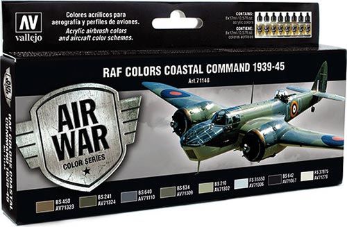 Sada 8 farieb Model Air na maľovanie bojových lietadiel RAF Coastal Command Britského letectva pre lietadlá umiestnené na pevnine ako aj pre hydroplány od 1939 do konca vojny. Sada obsahuje odtiene pre profily lietadiel a vzory kamufláží ktoré nakreslil Mark Rolfe. V spolupráci s "Pieza a Pieza"